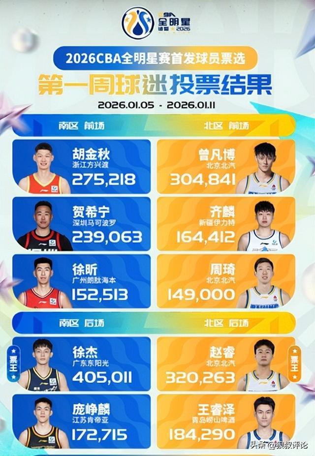 北京时间1月12日,根据CBA官方的公示,全明星赛首发球员票选第一周票数当中,南区的后场投票引发球迷的关注。